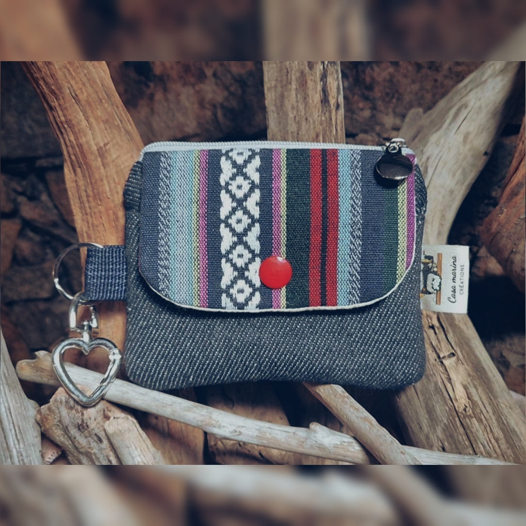 Petit porte pièces en Jean bleu foncé. Fermeture éclair grise.